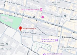 Como bien hemos dicho, el restaurante Mara de Zaragoza está a 5 minutos de la plaza de toros, en la calle Ramón Pignatelli con el cruce de Mayoral.